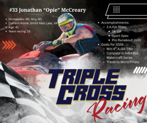 The most basic part of ministry is simply showing up! By providing an ongoing presence at events, we get to build relationships with great people who, like us, want to experience hope and purpose for their lives. Our goal is to make it abundantly clear that we are here because we care and we enjoy racing as part of the jet ski community! Our hope is to offer a life-changing ministry through the transformative Word of God that offers that hope and purpose in a relationship Jesus Christ.